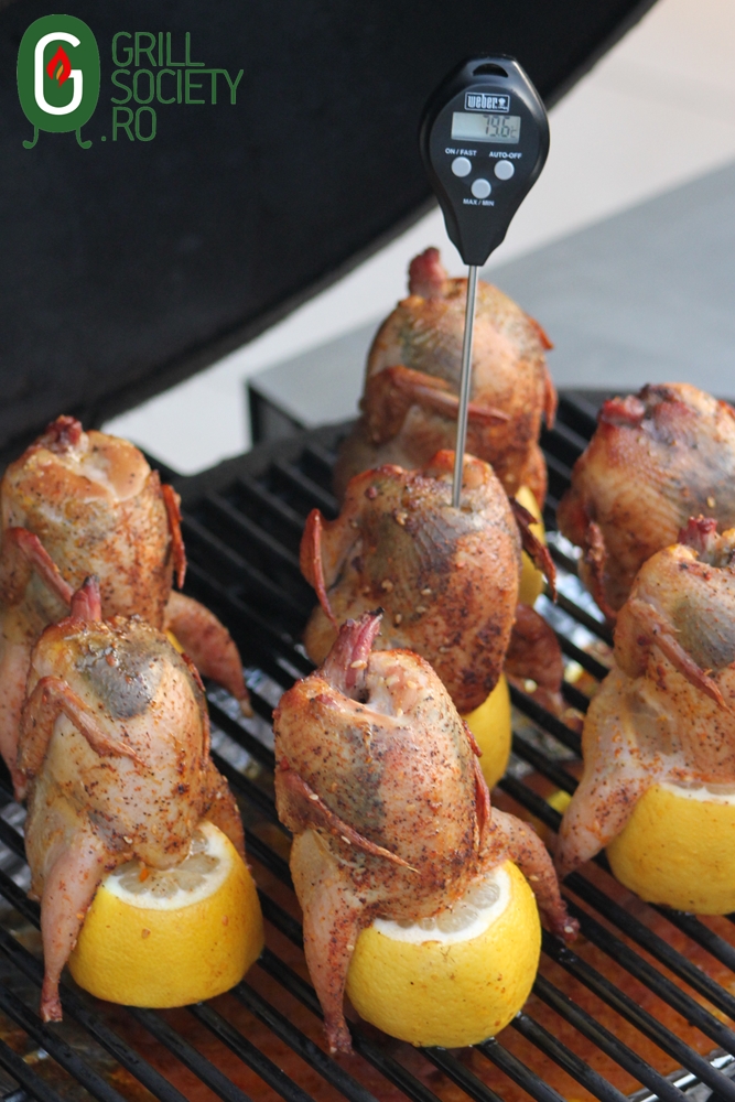 - lasati prepelitele in gratar aprox. 35-40 min. la cca. 200°C; nu uitati sa completati in carbuni chipsurile de afumare (sau in smoking box pentru aceeia dintre dvs. care au gratar cu gaz);